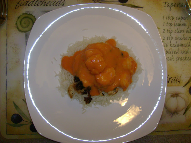 Every time I make this dish I always think of my brother. I think he would really enjoy it….one day I’m going to make it for him. I have this file on my computer that’s labeled “Red Lobster Recipes”. I don’t remember where I got it from but this recipe was in there. I’ve also seen it on numerous other websites so I don’t know who the original author is. I’ve posted the link from AllRecipes.com which has the original recipe. My main changes were to increase the garlic and onion. I salt and peppered the chicken breasts. I also added salt and red chilli flakes to the sauce. I used lemon juice instead of lime juice and left out the rosemary, reduced the butter and added oil. I used frozen raw shrimp and much more than the recipe calls for. This dish is very simple to make. I’ve read some reviews where people thought that 1/2 cup of flour is way too much and didn’t like the consistency. I like my sauce thick but I did end up added water to thin my sauce. The sauce has a slight sour taste which I liked.