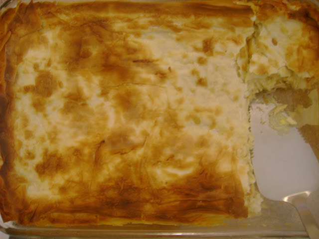 It was so funny the way she was doubting me…like I was making a huge mistake and it was all going to go horribly wrong. But I actually prefer this b/c I don't feel so heavy afterwards. But it is more work b/c you have to layer all the phyllo dough sheets. I make it in the afternoon and cover with plastic wrap in the fridge. Half hour before we are going to eat I put it in the oven.
