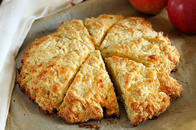 In a large bowl, whisk together flours, baking powder, baking soda, salt and cinnamon.